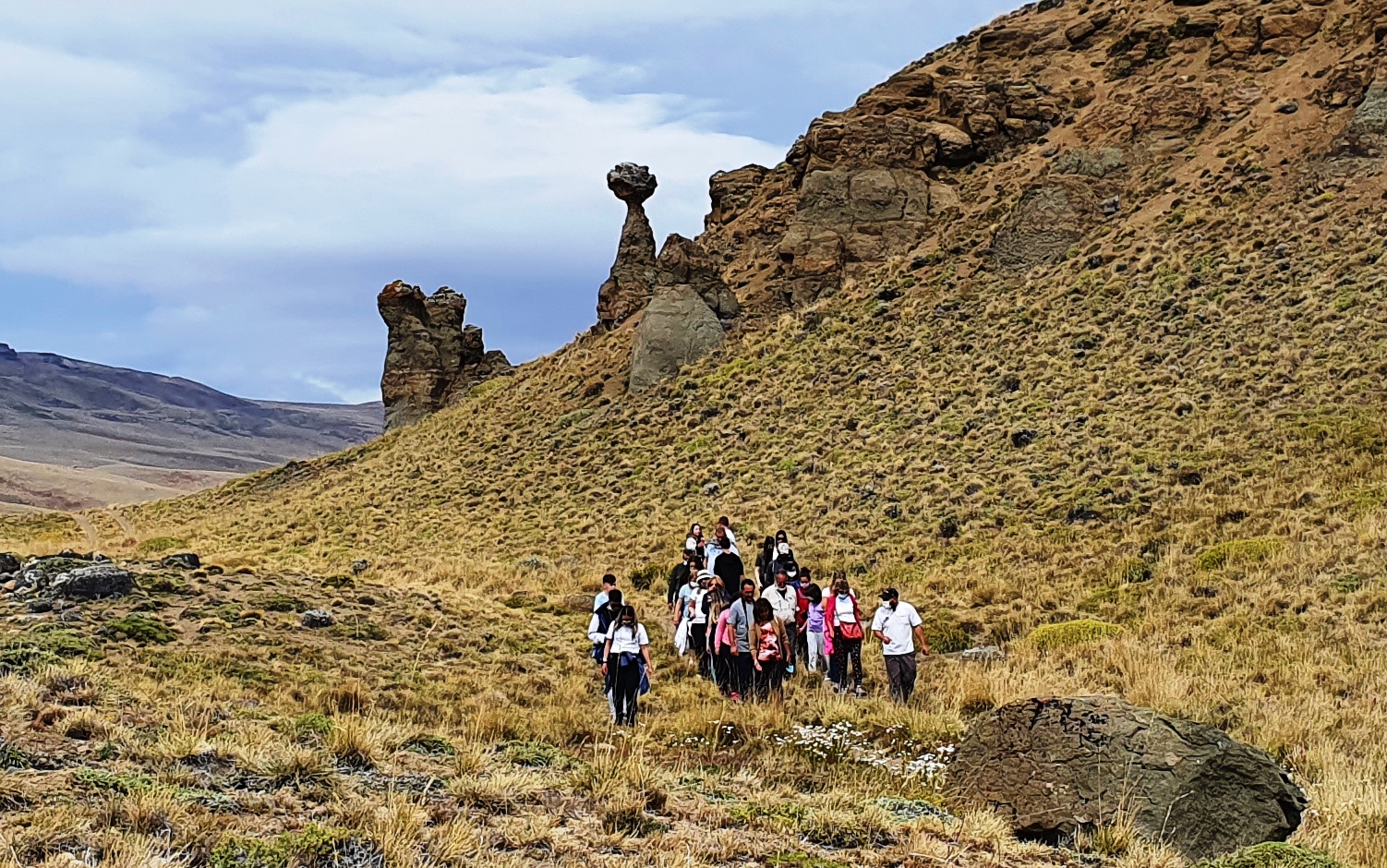 Mais tarde, adentraremos o cerro. Será possível optar por uma caminhada de 20 minutos entre formações rochosas únicas, blocos erráticos e a predominante estepa patagônica, resultado da glaciação de há 85.000.000 de anos.
