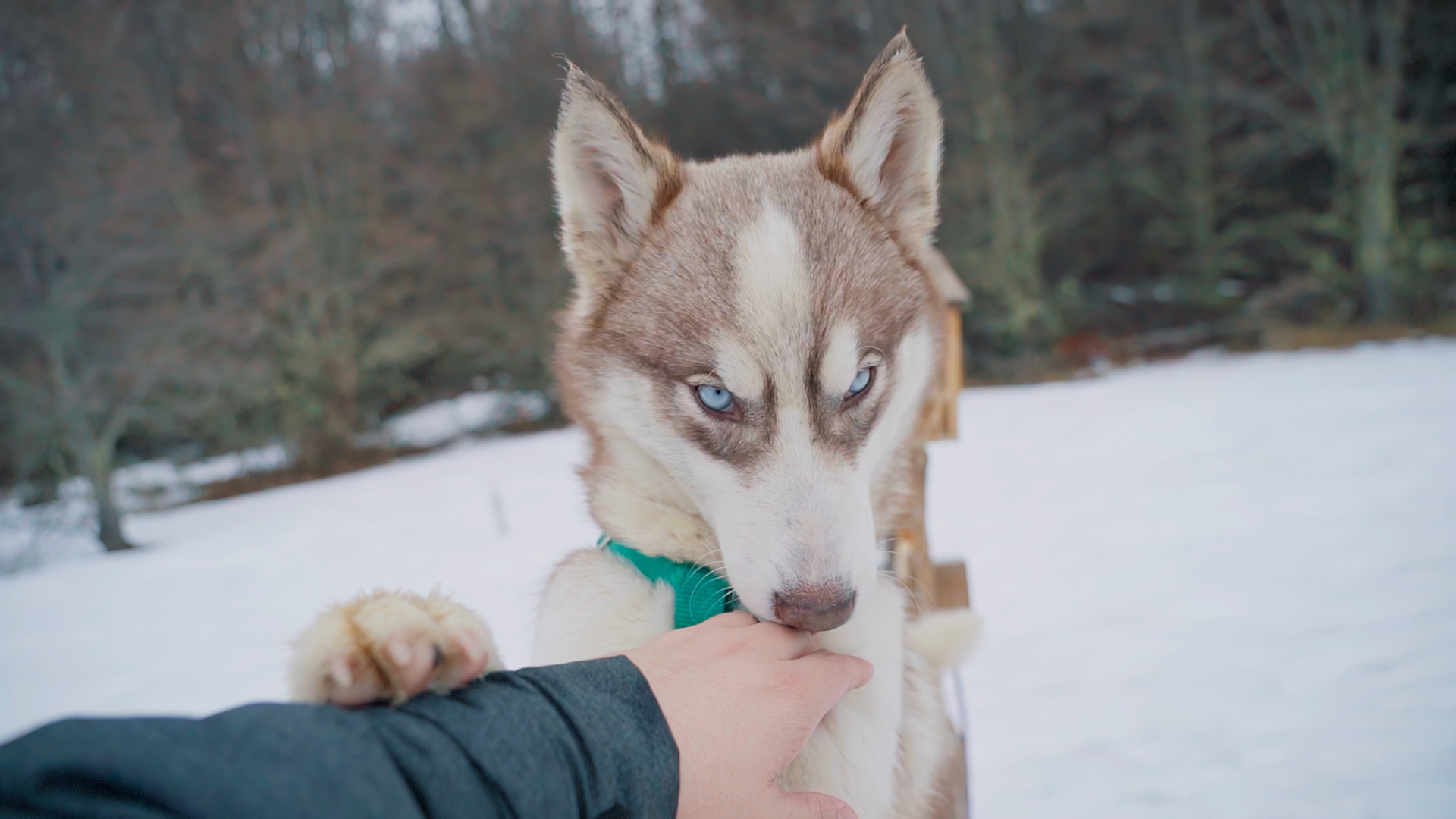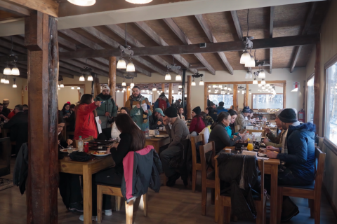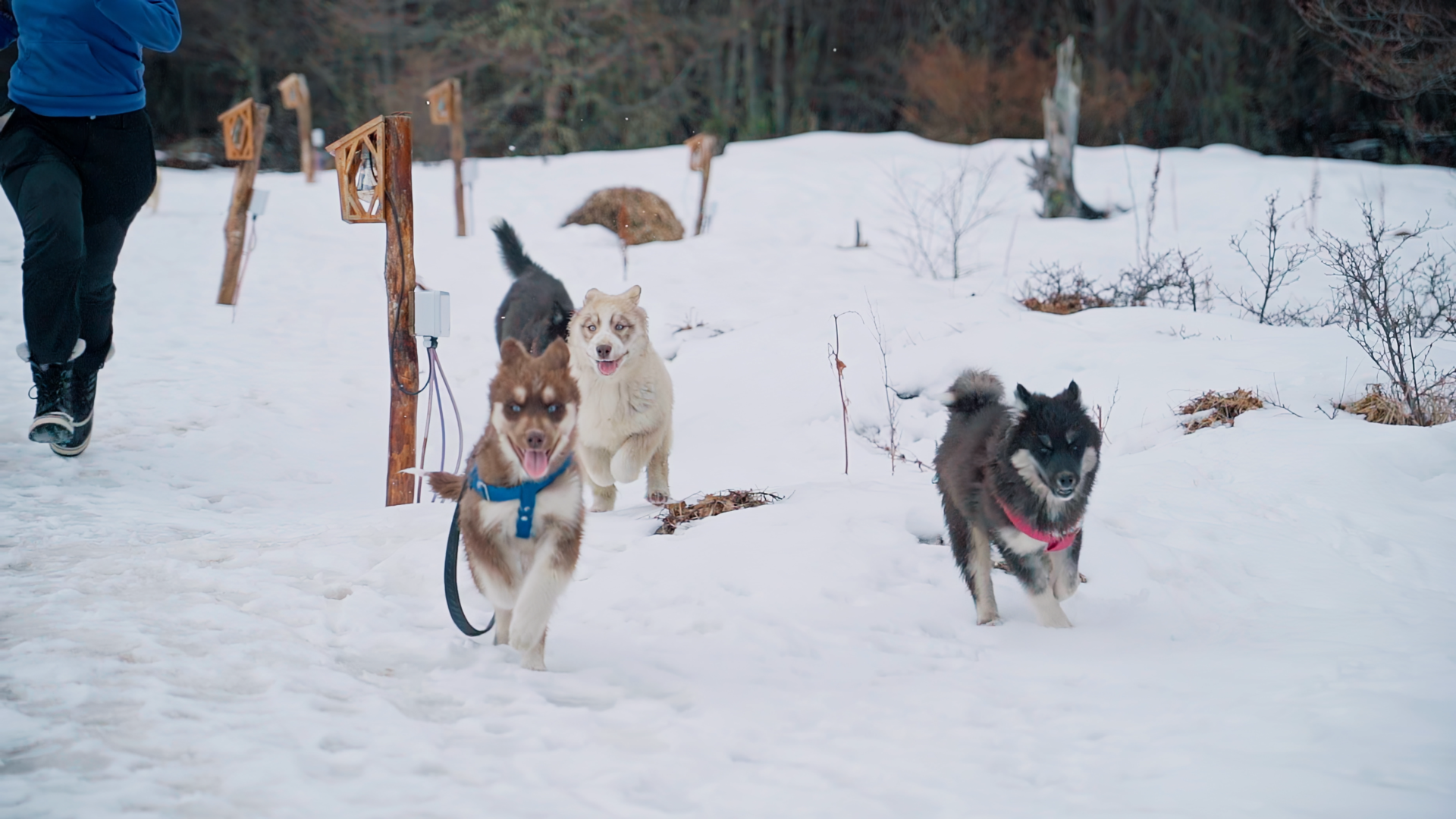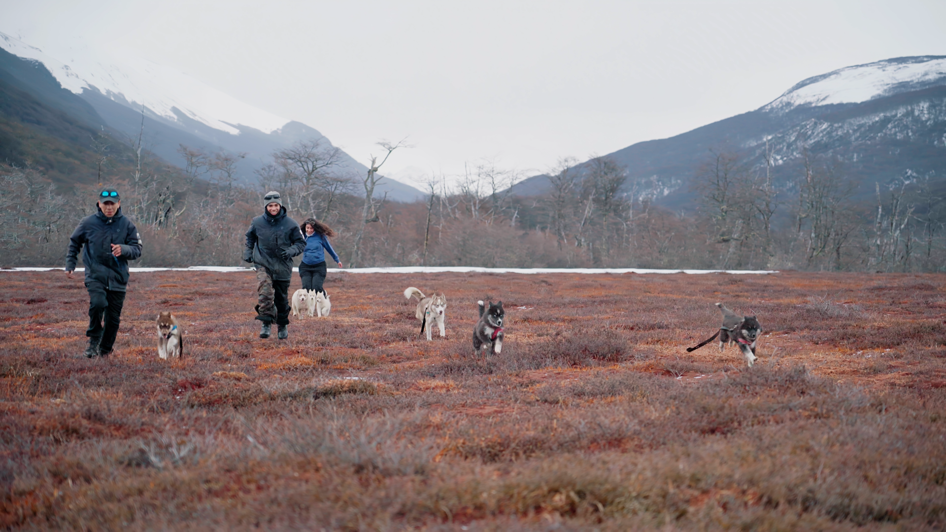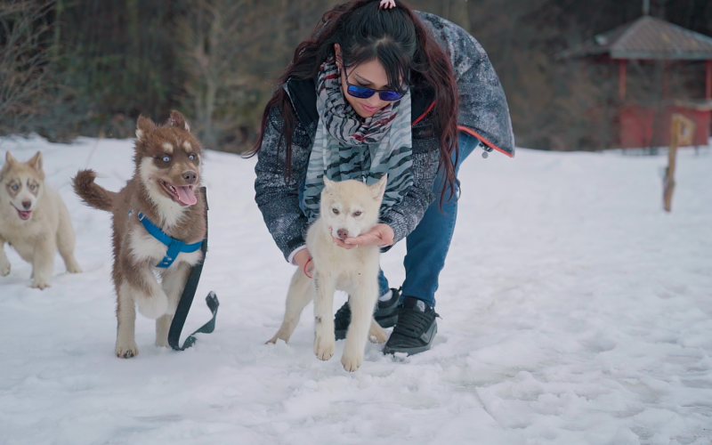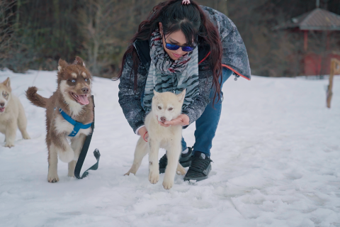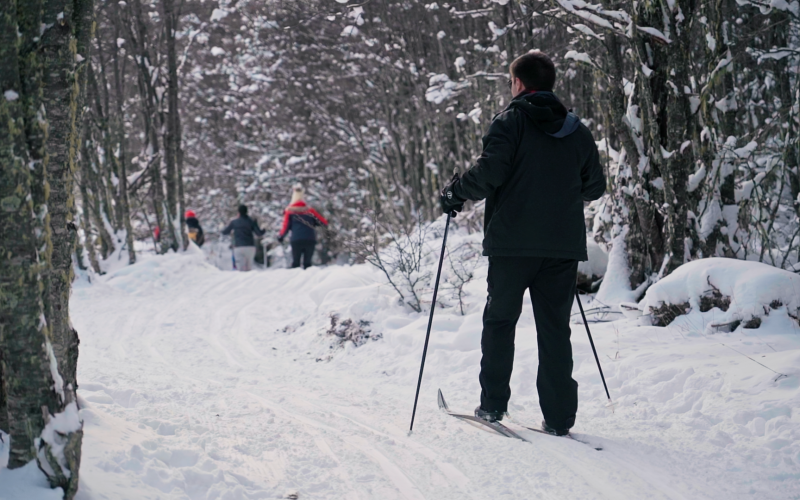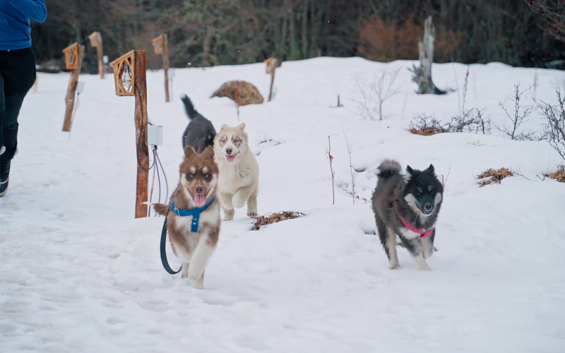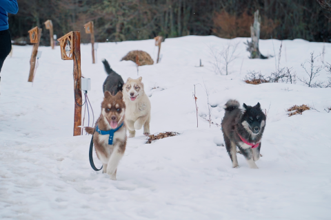 Trekking com Huskies: Para quem quer uma experiência ainda mais encantadora com os Huskies, teremos uma caminhada sensacional de 30 minutos pelos bosques nevados e lagos do Park Austral com um guia e os cachorros. É possível mesclar essa atividade com a Visitação ao Espaço Husky e Interação para uma experiência ainda mais completa.
