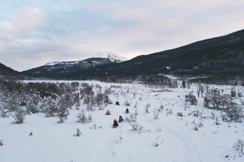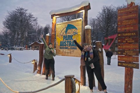 Aventura e Neve Park Austral: Moto de Neve + Esquibunda + Caminhada com Raquetes + Almoço Buffet Livre com Cordeiro Patagônico