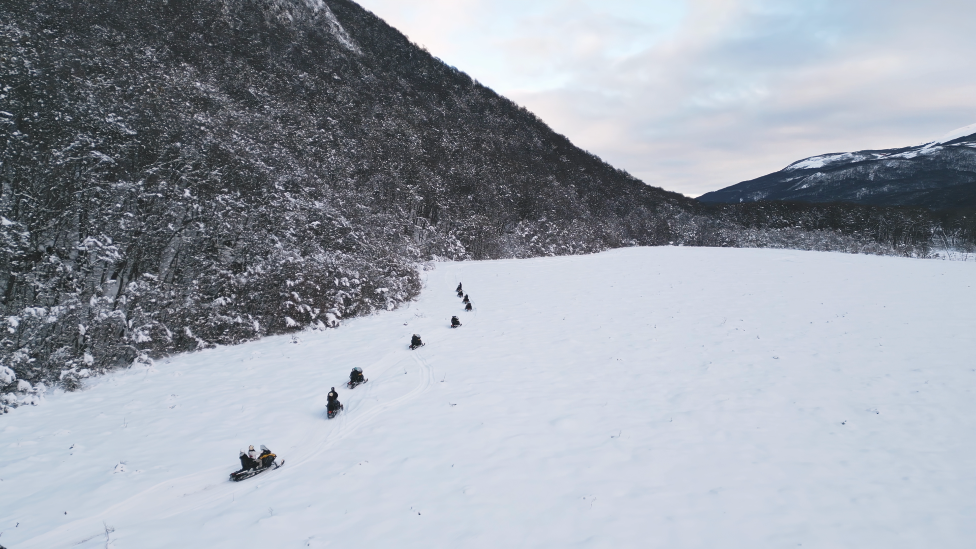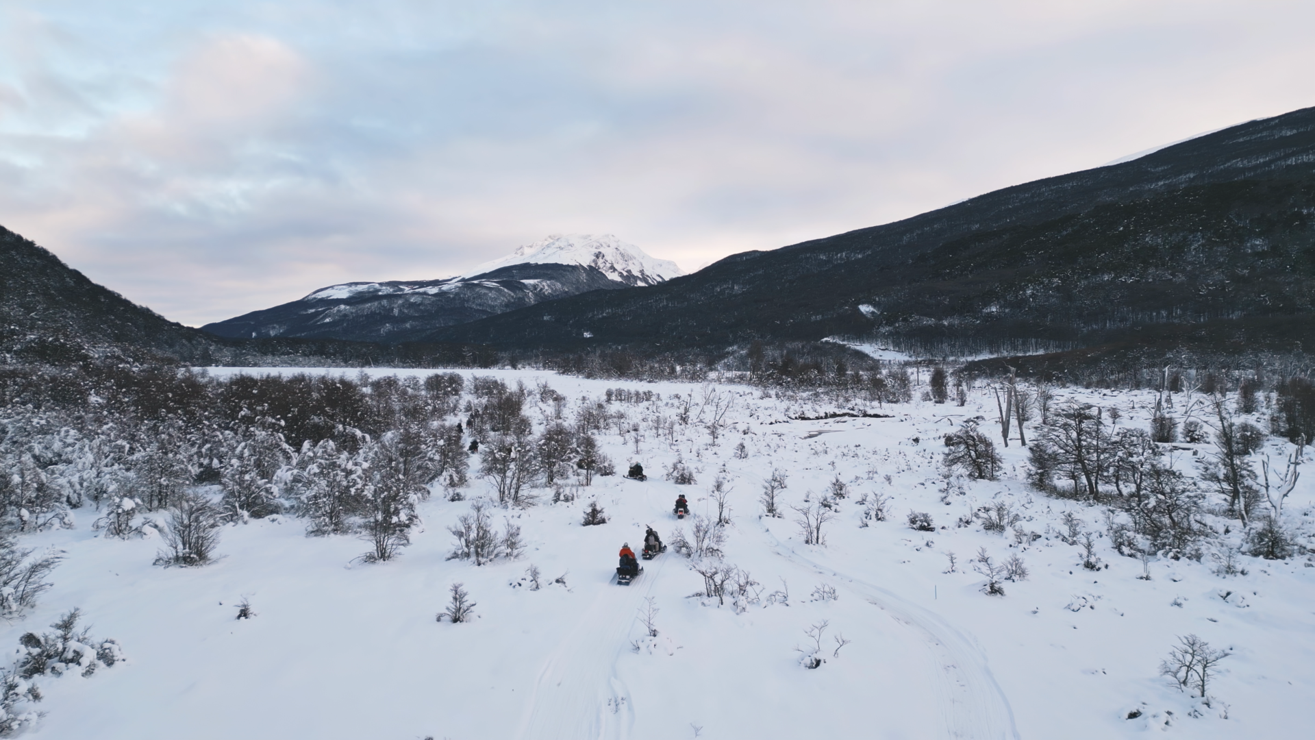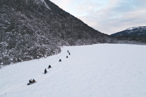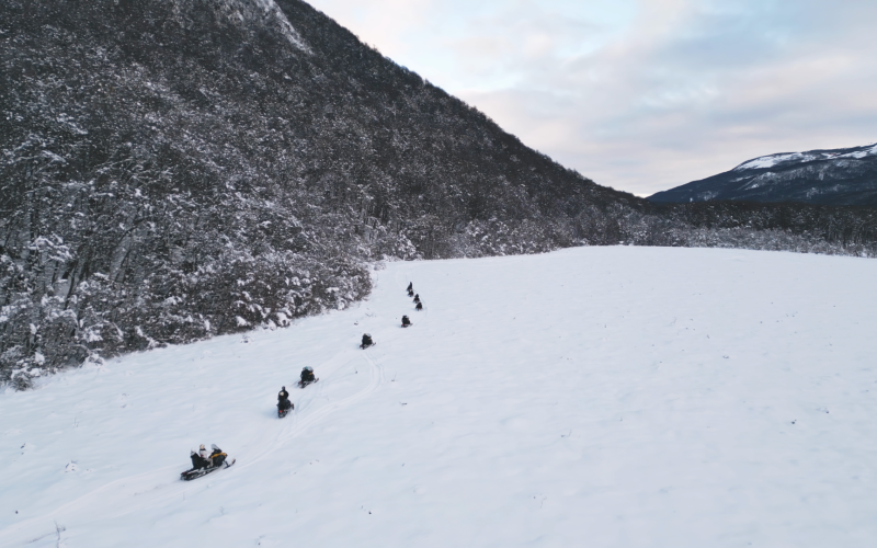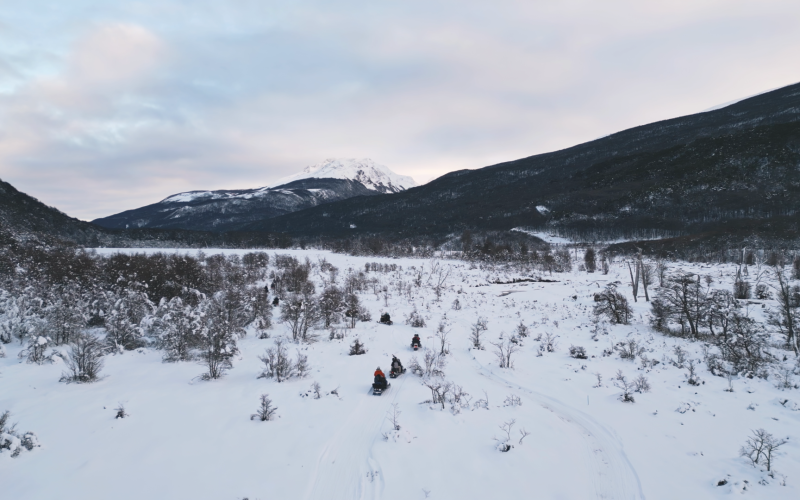 Moto de Neve: 5 km de um circuito em um trilha deslumbrante para aventureiros destemidos. Durante esse percurso você será abraçado por uma beleza surreal de nossos bosques patagônicos cobertos pela neve ao longo do caminho e aproveitar muito a beleza da natureza patagônica.
