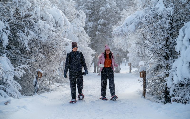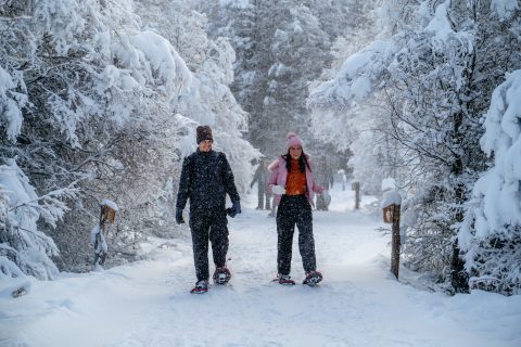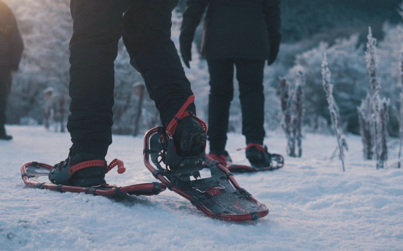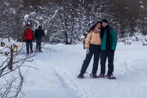 Caminhada com Raquetes: Com as raquetes de neve nos pés, começaremos a nossa caminhada pelos bosques, onde os amantes de fotografia terão um cenário majestoso para registrar suas imagens, em