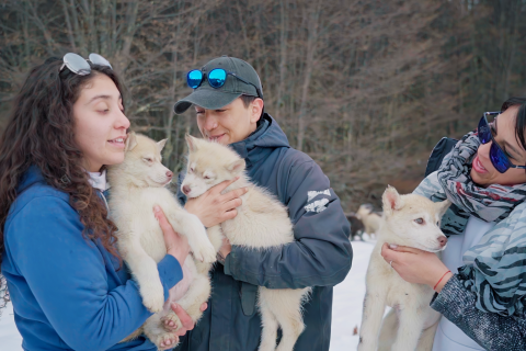 Visitação ao espaço Husky e Imersão a história dos Huskies: Os Huskies em Ushuaia são uma beleza à parte! Nesta atividade iremos conhecer a história impressionante desses animais e ainda teremos um tempo para tirar fotos e brincar com eles. Essa atividade tem um total de 30 minutos.