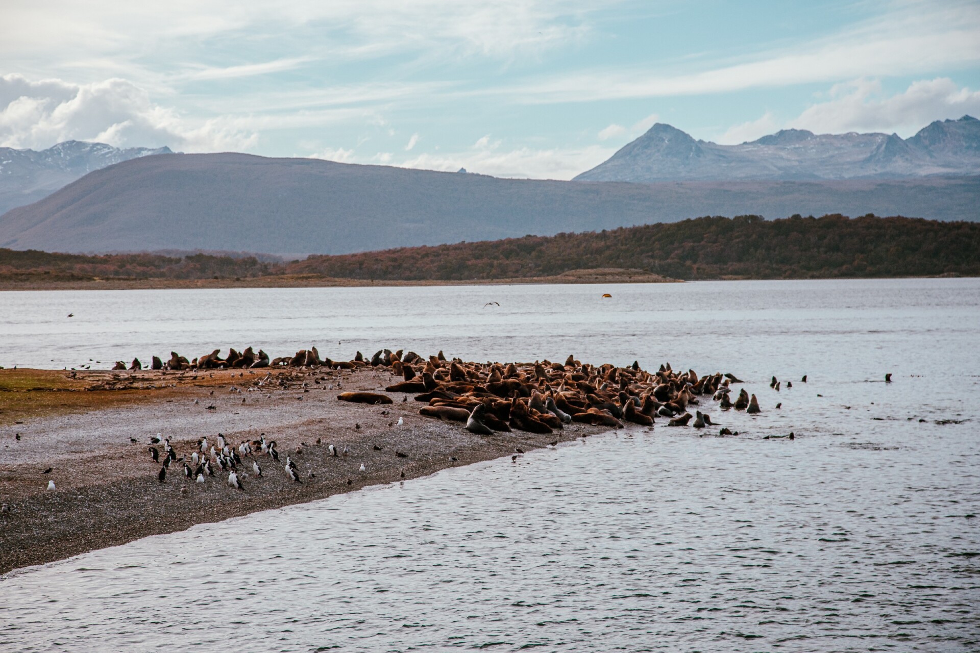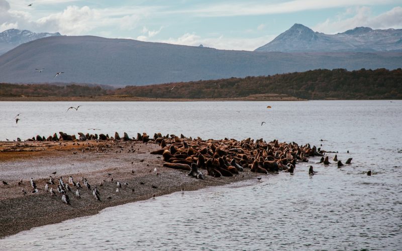 Embarcaremos no porto turístico do Canal Beagle, que é cortado ao meio pela linha imaginária que divide Argentina e Chile, neste percurso navegaremos por águas argentinas, mas apreciamos as montanhas do lado chileno do canal.