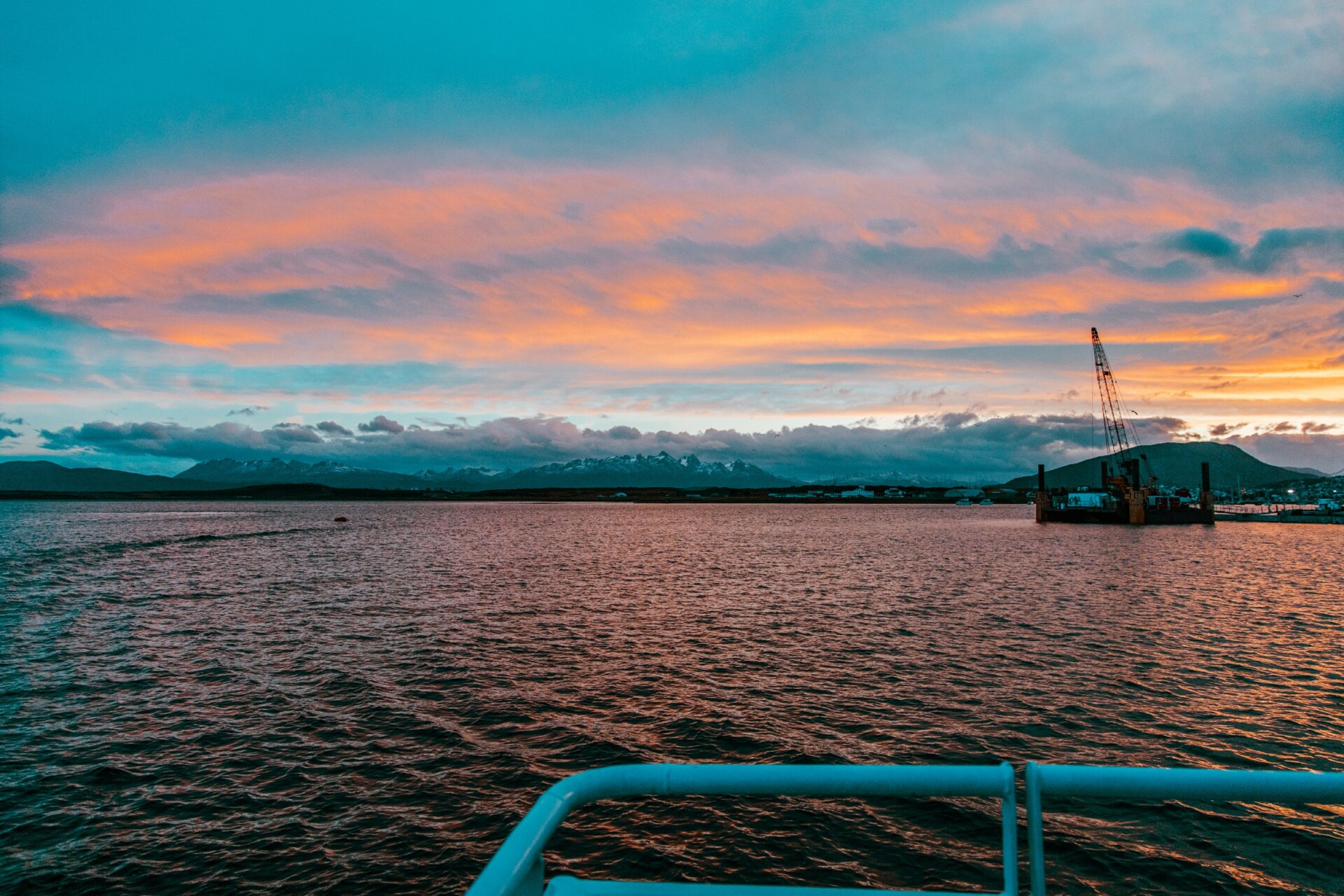Logo no início da navegação, já podemos desfrutar da bela “Bahía Ushuaia” e observar a posição privilegiada da cidade, que se encontra cercada por magníficas montanhas e glaciares.