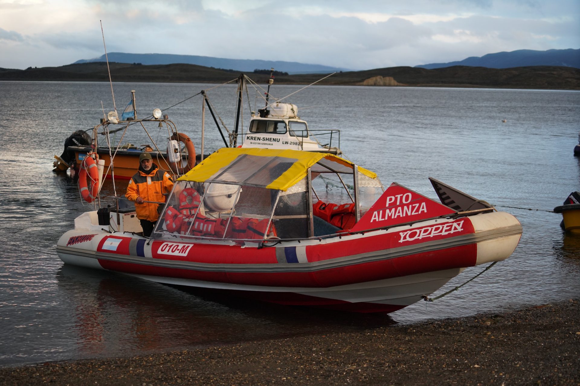 Chegamos a Puerto Almanza, o povoado mais austral da Argentina conectado por estrada. A partir dali, iniciaremos uma navegação exclusiva em embarcação de pequeno porte, ideal para um avistamento mais próximo e personalizado, bastante diferente das grandes embarcações comerciais.
